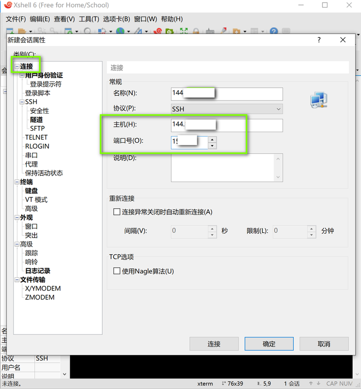 在【连接】里填写搬瓦工主机ip地址和VPS的端口号“22”。