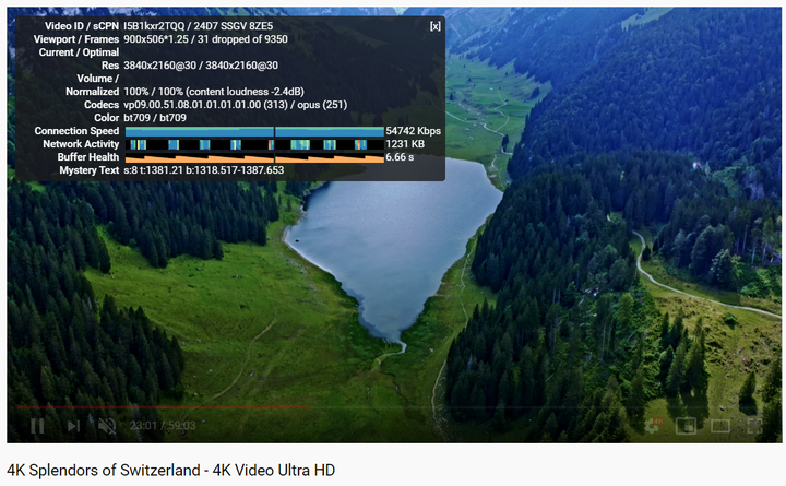 下面的是通过搬瓦工观看油管的4K测试数据,可以非常流畅的观看油管的4K视频。