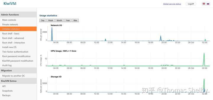 【Detailed statistic】可以查看所购买VPS的系统资源使用情况。
