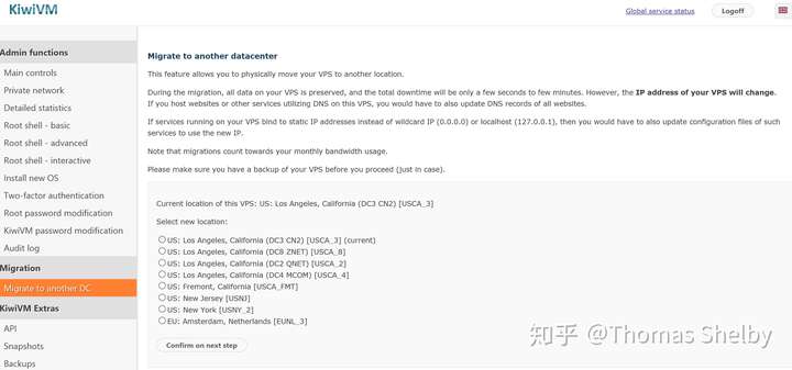 【Migrate to another DC】可以切换到其他机房,随着机房的迁移,我们的IP地址也会相应变化。