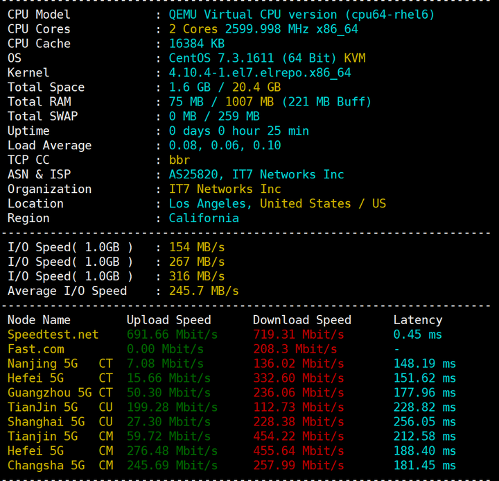搬瓦工机房测试数据